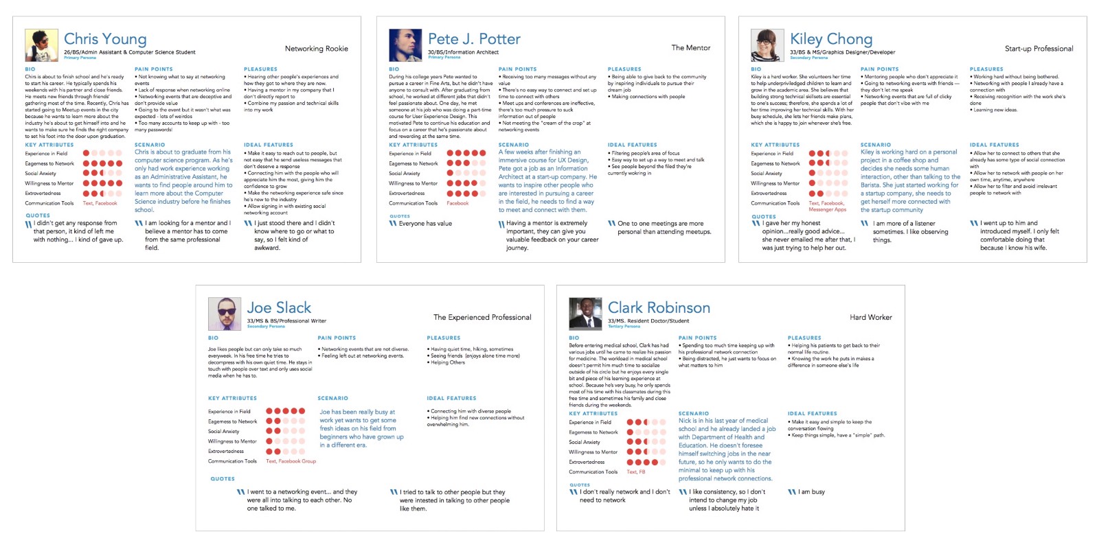 Based on our goals and the user research, we selected 2 primary personas and 1 secondary persona to focus on.
