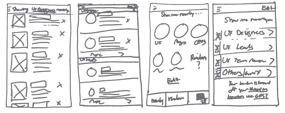 After prioritizing features based on the personas, we sketched together. We took into account common design patterns in other messaging apps to make the app intuitive to use.