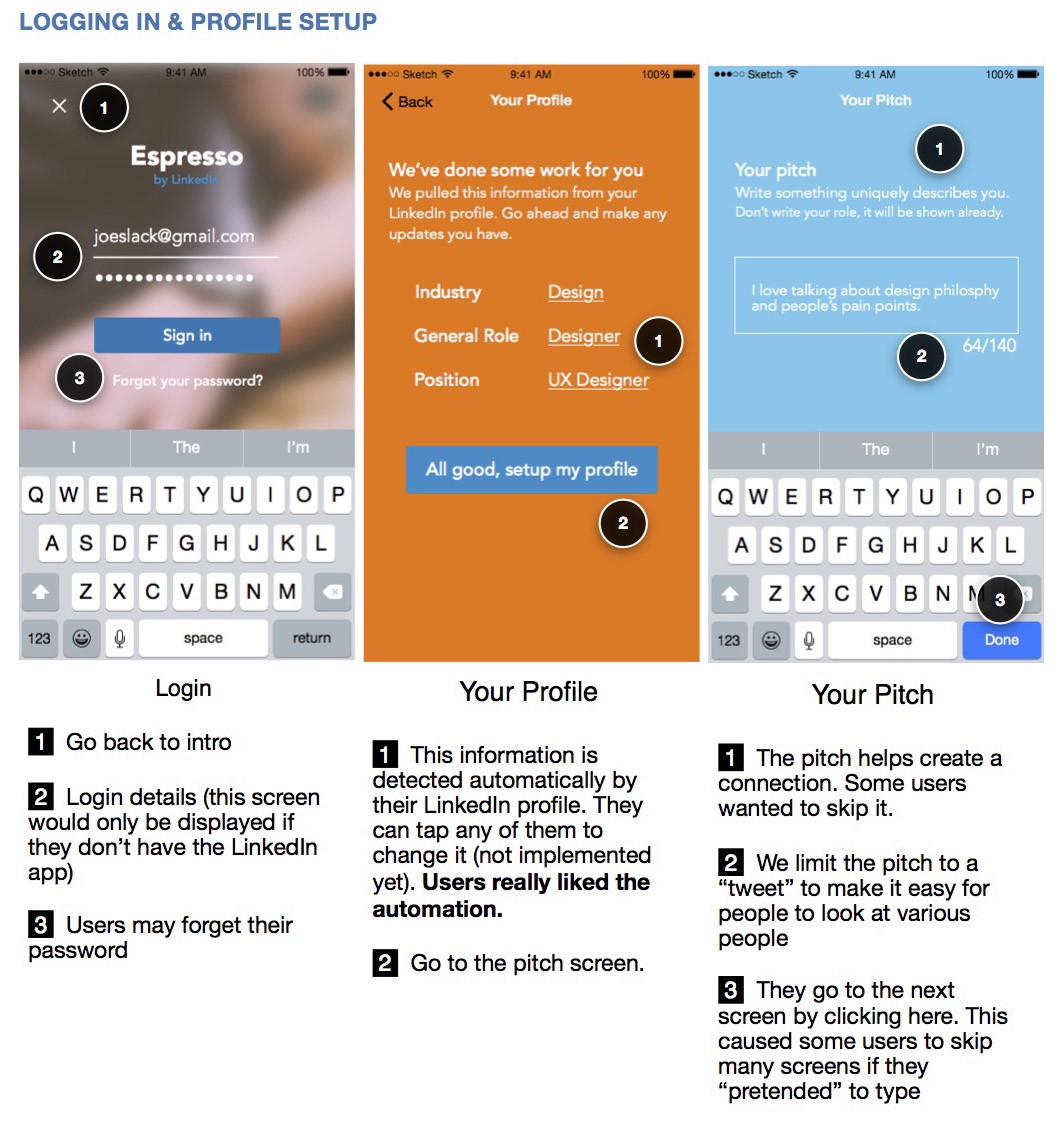 Applying for jobs can seem hopeless for some users, furthermore applying online without any connections can seem like you are sending your resume to a blackhole. Users report that they receive a lot of annoying or irrelevant messages on their professional networking platform. We sought to solve both these issues by designing a location based networking app called Espresso.